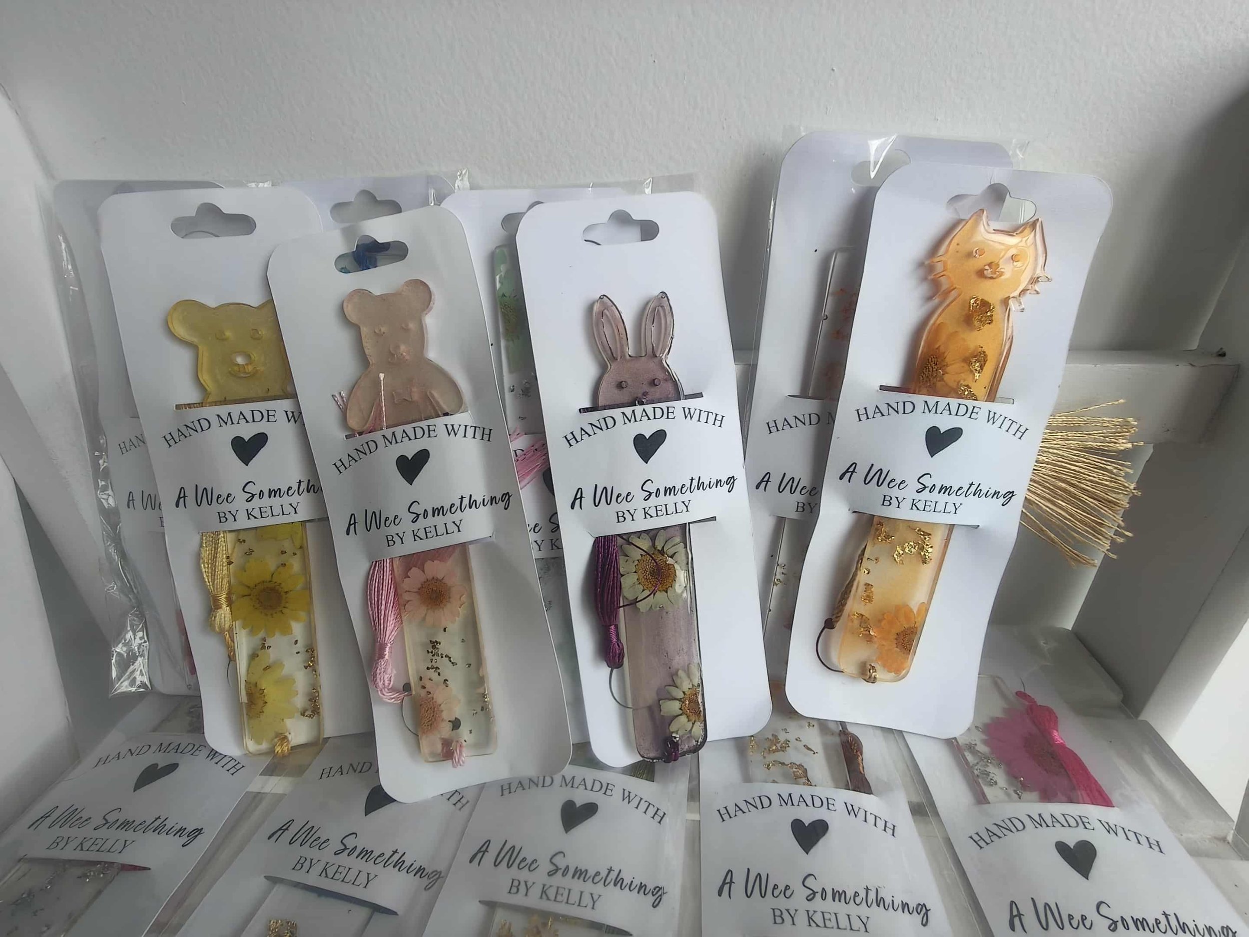 Keep track of where you are up to with a very stylish book mark. Made from Resin and dried flowers that you can customise from the colours in our selection